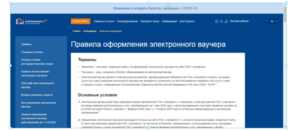 Использование ваучера авиакомпании Аэрофлот