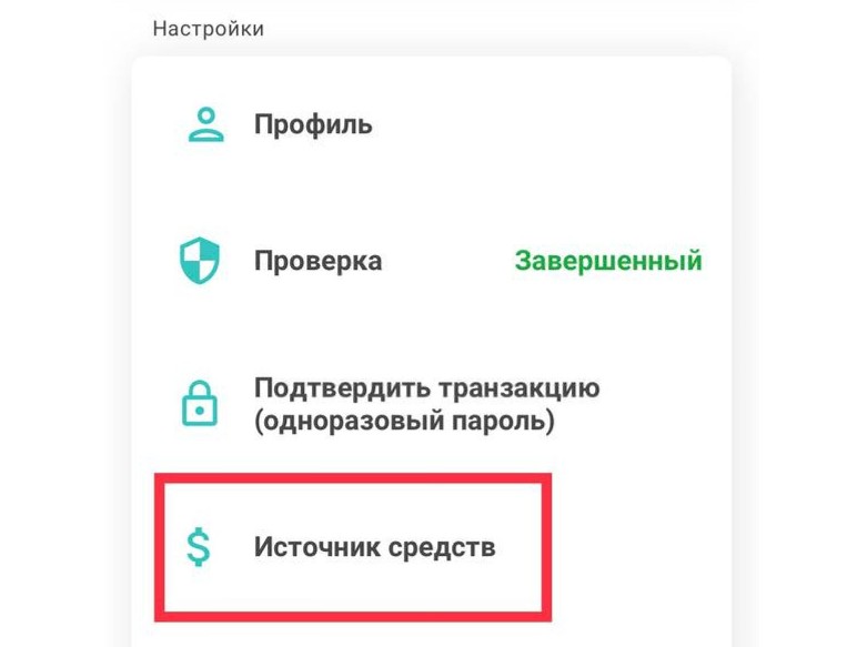 Далее нужно открыть свой профиль по иконке слева наверху на главной странице. Ищем кнопку «Источник средств», нажимаем, после нее откроется страница с опросником, который необходимо заполнить.
