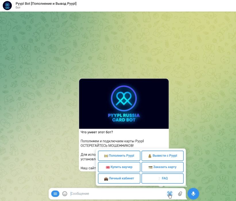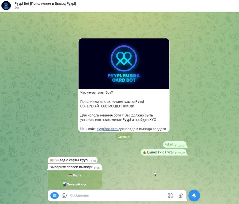 Для использования бота у Вас должно быть установлено приложение Pyypl и пройден KYC