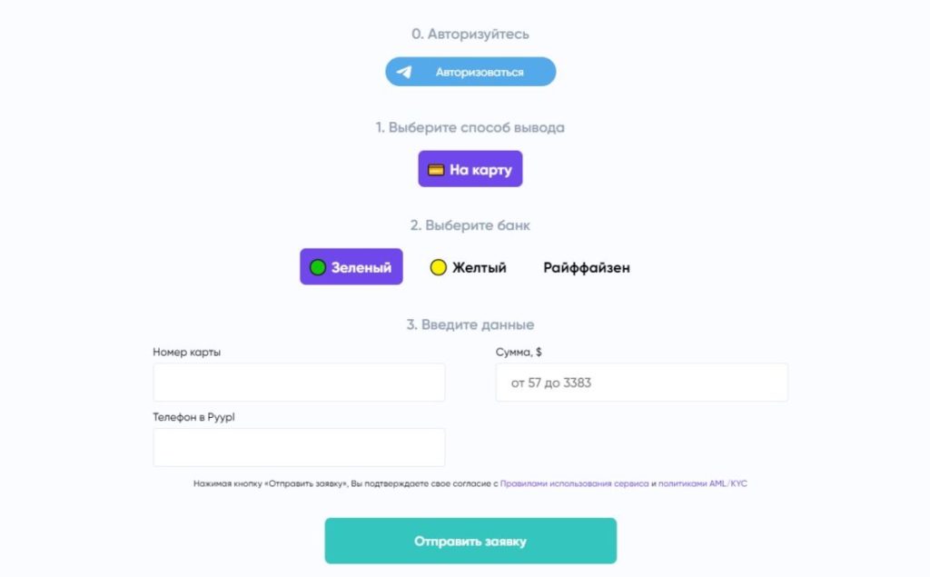Если всё сделано правильно, останется выбрать банк: зеленый (Сбер), желтый (Тинькофф) или Райффайзен и ввести данные для перевода (номер телефона, сумма, номекр карты).