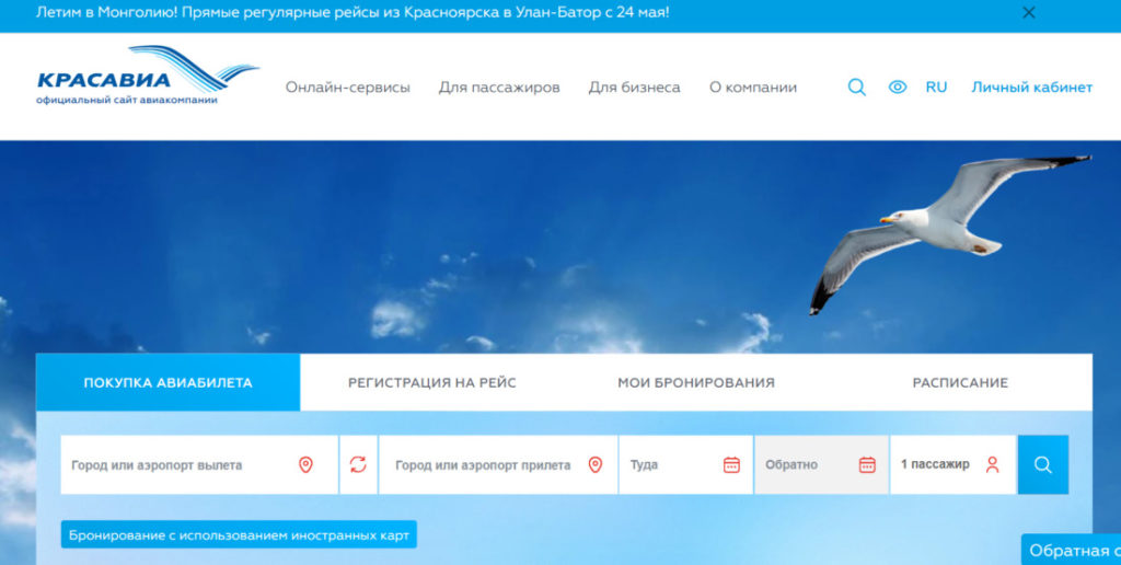 Оплата билетов через сайт компании КрасАвиа