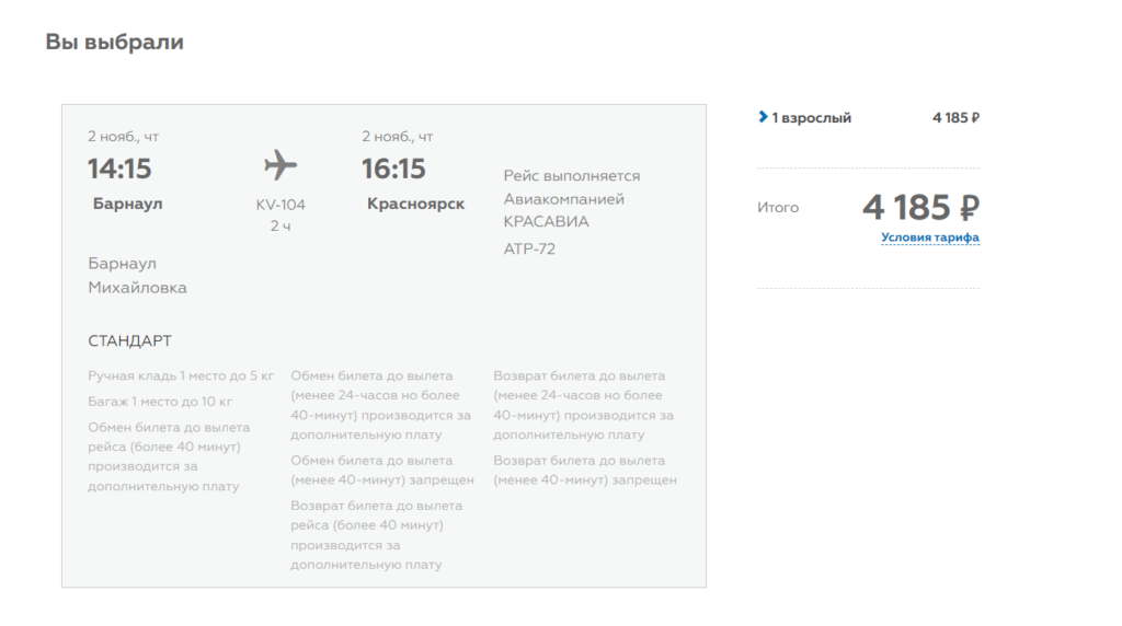 У АО «КрасАвиа» предусмотрено 2 тарифа.