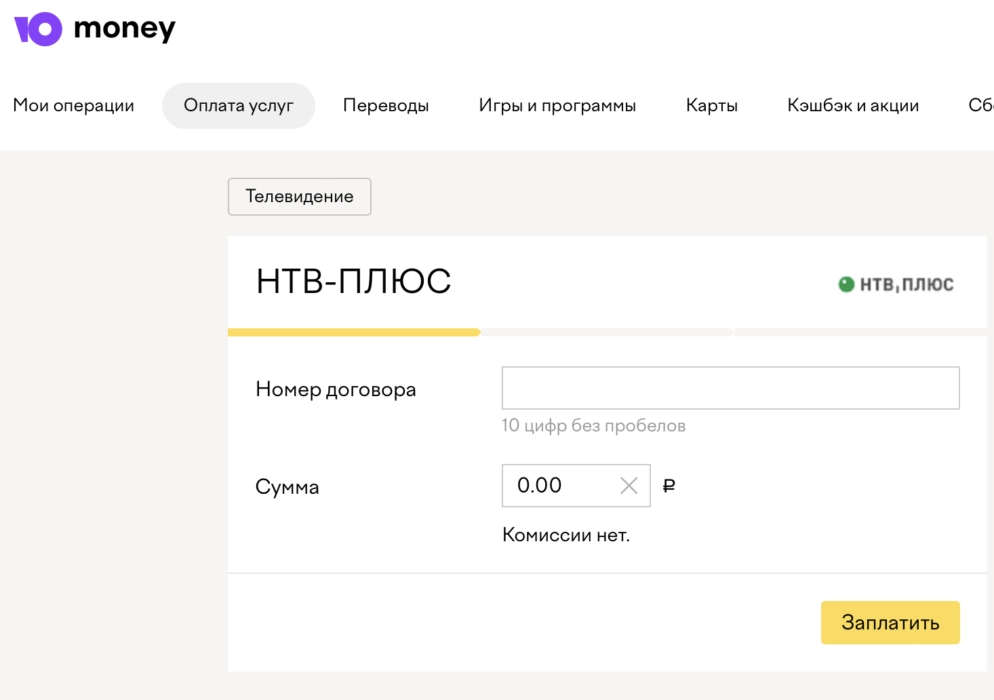 «Ю-Мани» («Яндекс.Деньги») является быстрым и удобным способом оплаты услуг «НТВ-ПЛЮС» без комиссии.