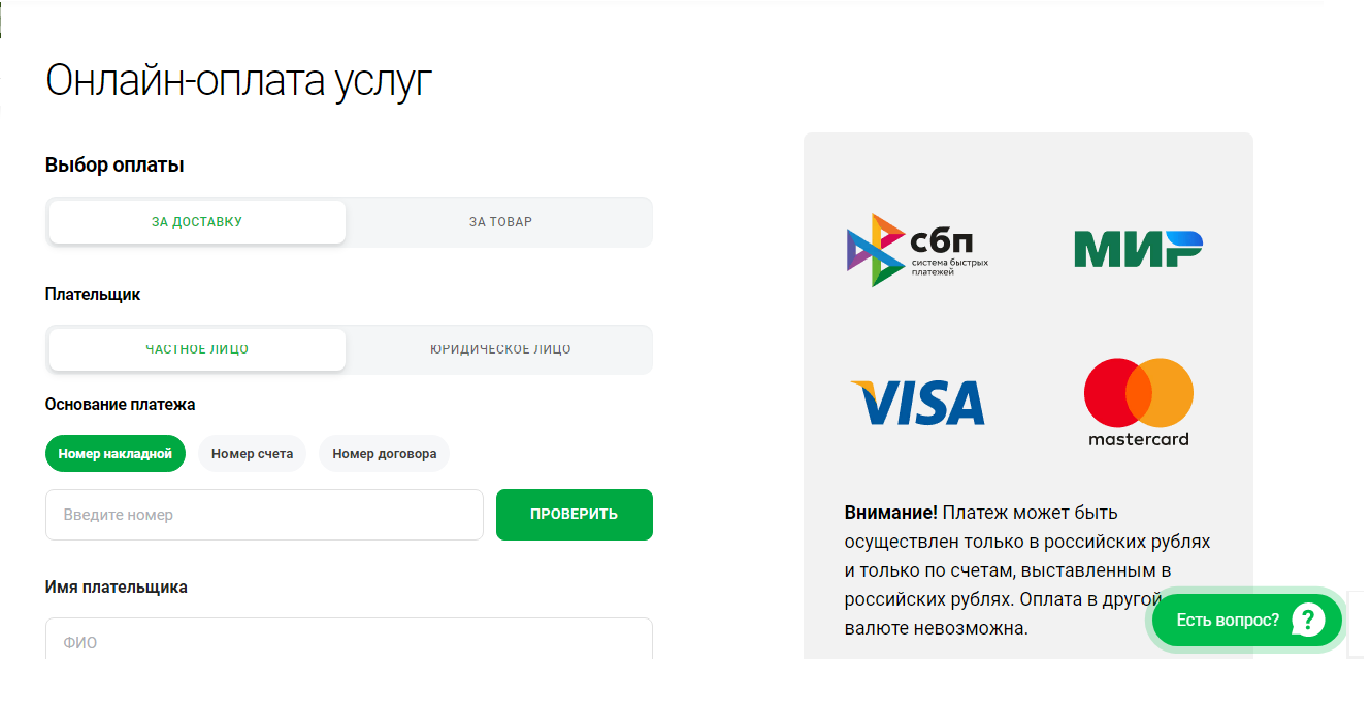 Для юридических лиц есть вариант оплаты получателем не только услуги доставки, но и стоимости самого товара/груза.