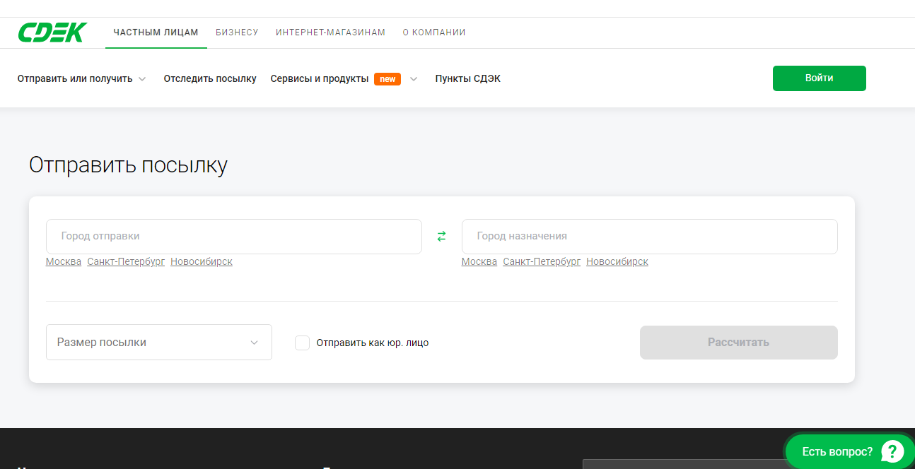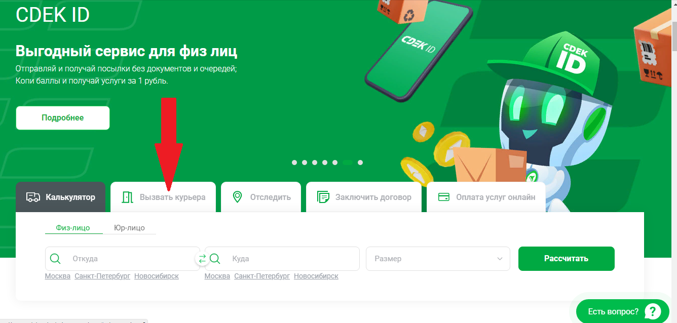 Вызов курьера в офис или квартиру оформляется онлайн-заявкой или через диспетчера местного офиса/пункта СДЭК.