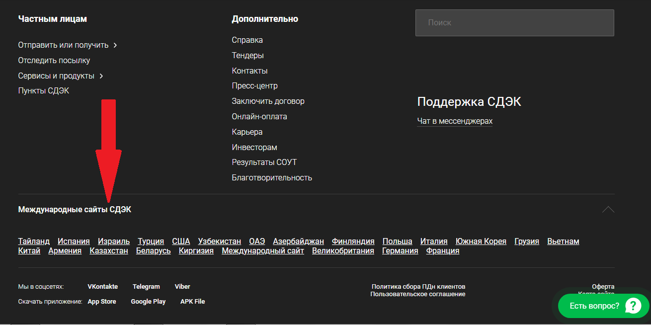 Информация о международных партнерах СДЭК расположена на сайте.