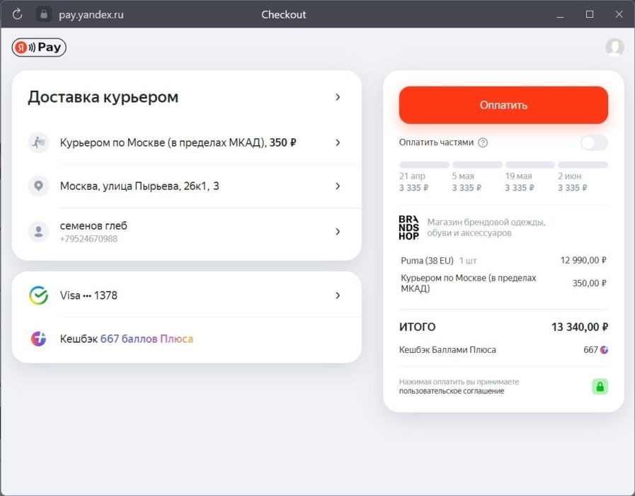 Yandex Pay работает примерно так же, как и Tinkoff Pay. Однако у него есть важное преимущество – использовать карты можно не конкретного банка, а любого. Будь то «Сбер», «Тинькофф», «Альфа» и любые другие. Еще одно важное преимущество – не нужно скачивать вообще ничего. Нужно лишь завести аккаунт на сайте «Яндекса» и быть авторизованным в учетной записи.