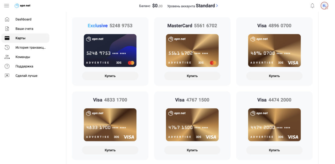 Сервис выпускает международные банковские карты Visa и MasterCard. Карты пополняются криптовалютой и подходят для любых видов платежей на иностранных сайтах: облачные сайты и подписки, интернет-магазины, рекламные системы и так далее.