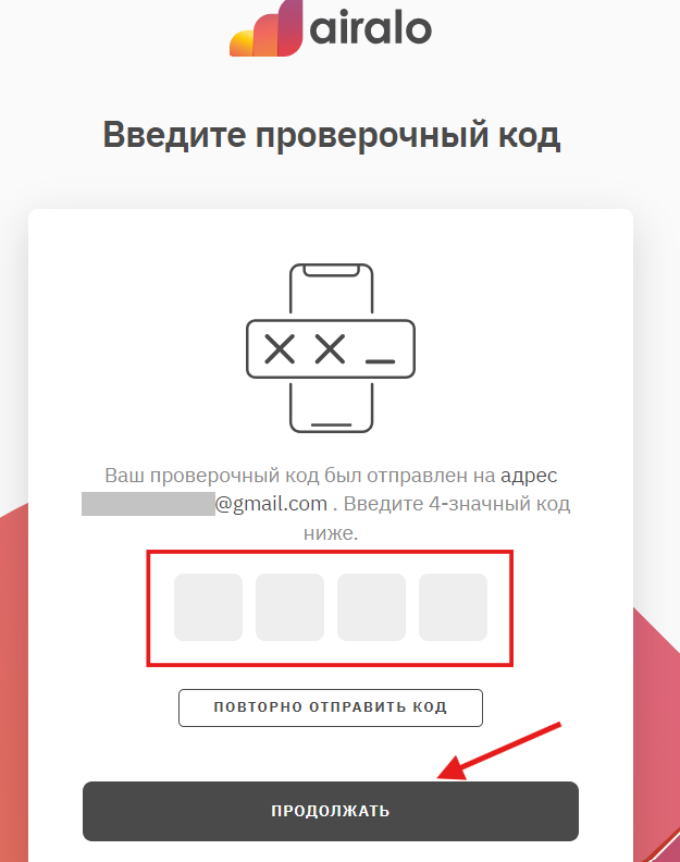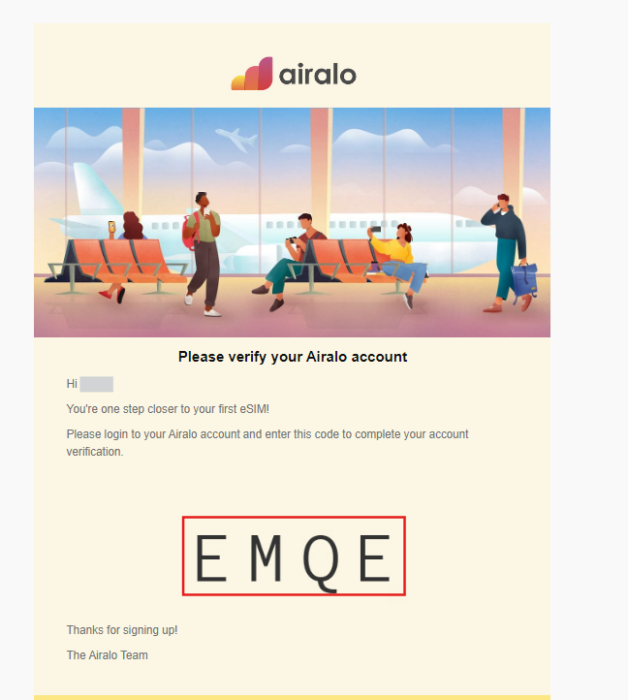 - В вашей электронной почте откройте письмо от Airalo и запомните код для верификации. Вернитесь на сайт сервиса и введите код в соответствующую форму.