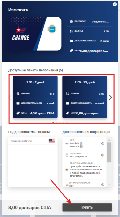 - Выберите оптимальный пакет, нажмите кнопку «Купить».