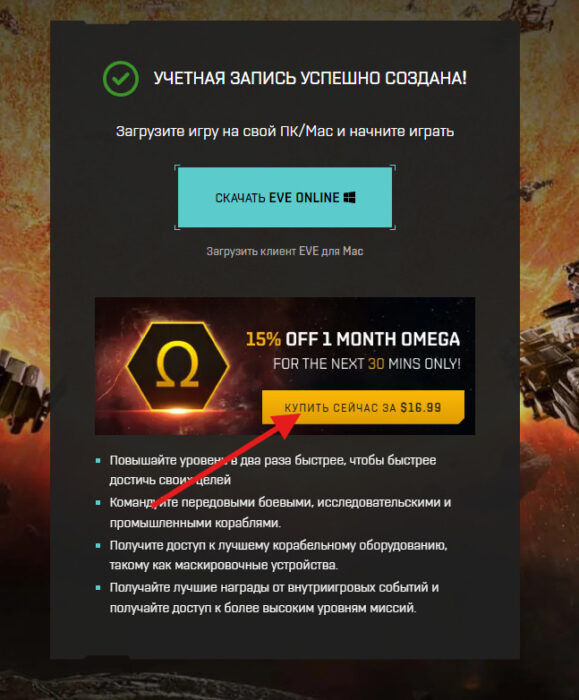 - Вы увидите уведомление о создании учетной записи. Что бы перейти в магазин нажмите на кнопку «Купить сейчас за ...».