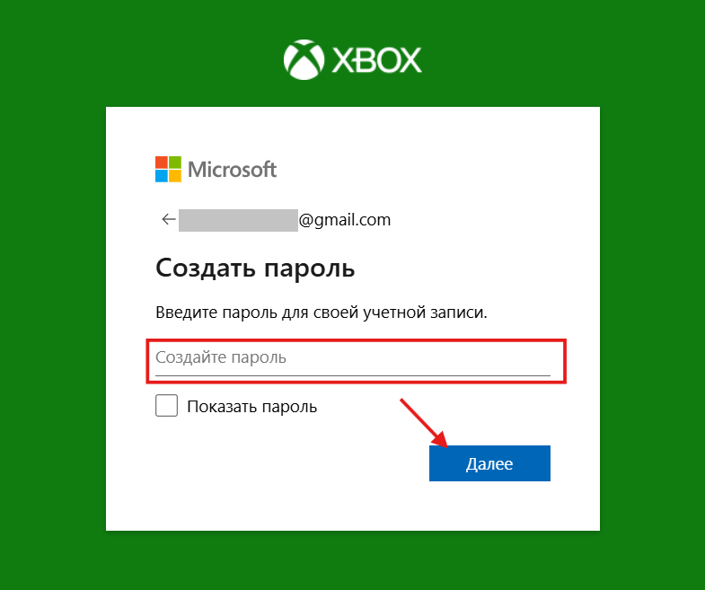 - После этого придумайте и введите надежный пароль и нажмите кнопку «Далее».