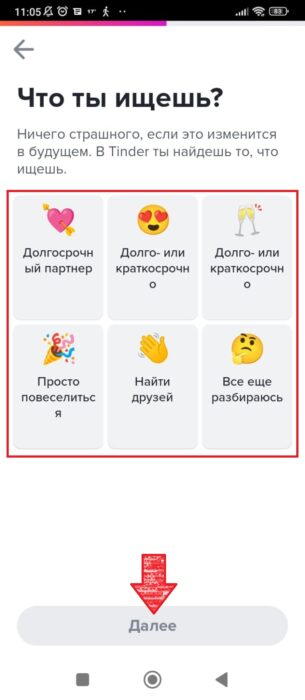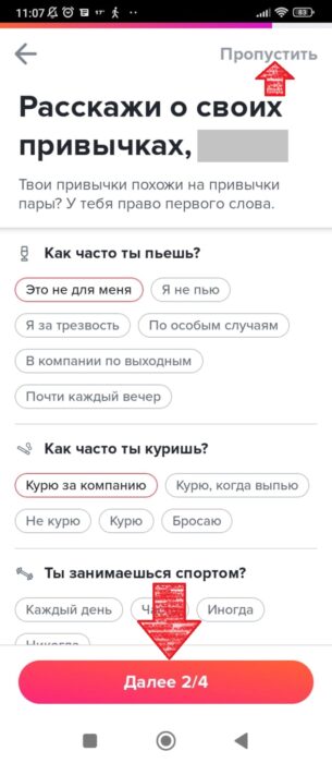 Или расскажите о своих привычках и нажмите кнопку «Далее», что бы перейти к следующему этапу.