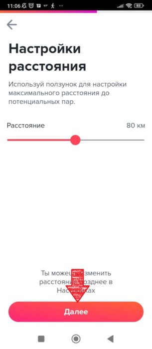 - Установите расстояние поиска, нажмите кнопку «Далее».