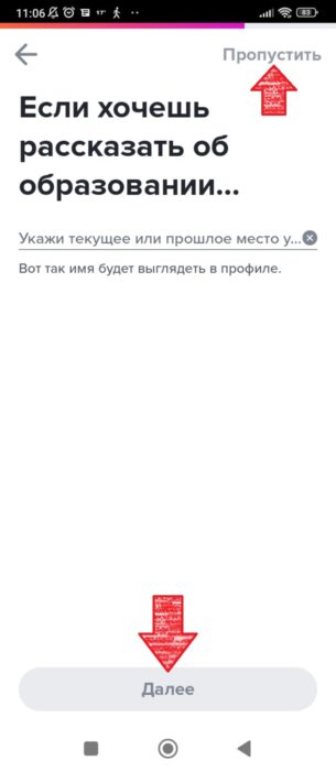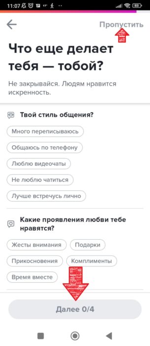 - Данный этап заполнения профиля можно пропустить, для этого нажмите на крестик в левой верхней части экрана. Или следуйте инструкциям и нажмите кнопку «Продолжить».