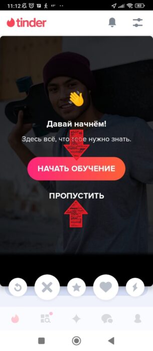 - Пройдите гайд по приложению, нажав кнопку «Начать обучение», или игнорируйте данный этап, нажав «Пропустить».