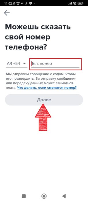 - Укажите номер телефона, к которому у вас есть доступ, на него вам поступит смс с кодом подтверждения. Нажмите кнопку «Далее».