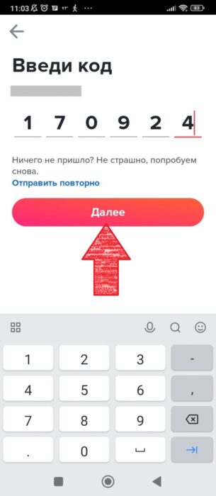 - Введите код подтверждения из смс. Нажмите кнопку «Далее».